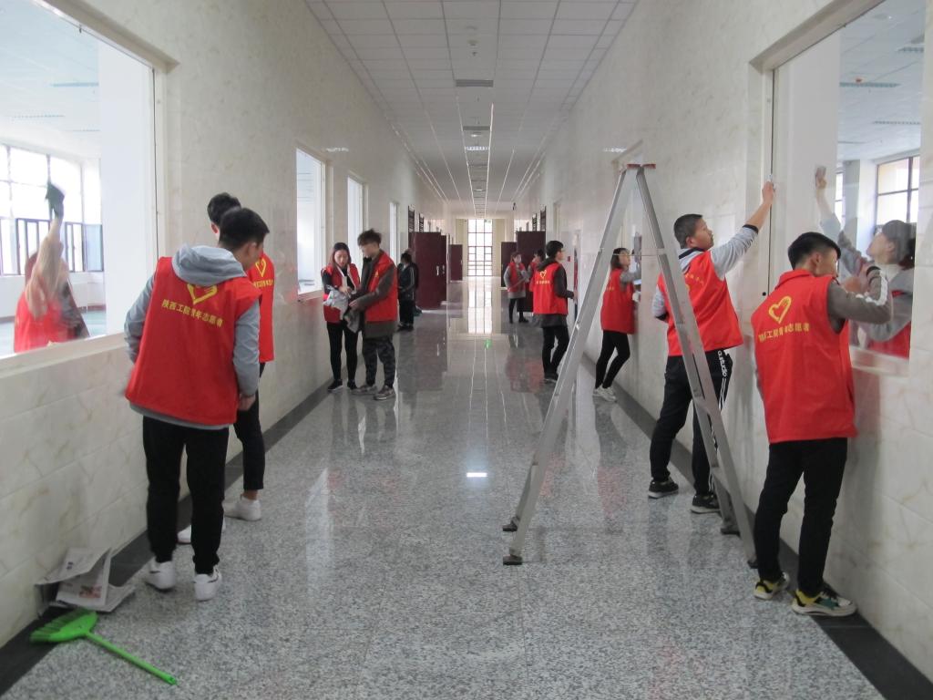 为贯彻落实习近平新时代中国特色社会主义思想和党的十九大精神,大力弘扬雷锋精神,培育和践行社会主义核心价值观,在第56个“雷锋月”之际,乐鱼网页版组织师生志愿者40余人对精艺楼一楼招生咨询室、公共区域等进行整理、清洁,用实际行动诠释全心全意为我院单招工作服务的真谛。