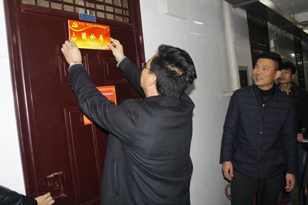 为了持续推进“两学一做”学习教育,充分发挥党员的先锋模范作用,进一步配合学院为期六周的学生宿舍安全及卫生集中整治活动,乐鱼网页版从11月15日至12月28日在学生党员中开展“亮出身份·树立标杆·作出表率·带动团队”评选系列活动,12月12日下午,党委副书记、副院长刘永亮,学工部部长、学生处处长王超联,信息学院总支书记闫军等为党员宿舍挂牌。
