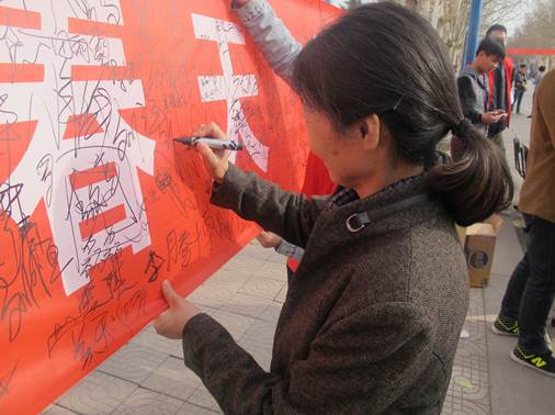 活动现场吸引了众多学生前来咨询,也有很多学生带着电脑现场求助。志愿者们有的忙于电脑技术操作,有的忙于电脑疑问解答,还有些技术虽不娴熟的志愿者,也积极的做好整个活动的后勤工作。活动期间,很多师生在雷锋精神的号召下纷纷在我们准备的横幅上留下签名,希望继承和发扬雷锋精神,做一个积极向上的雷锋人。