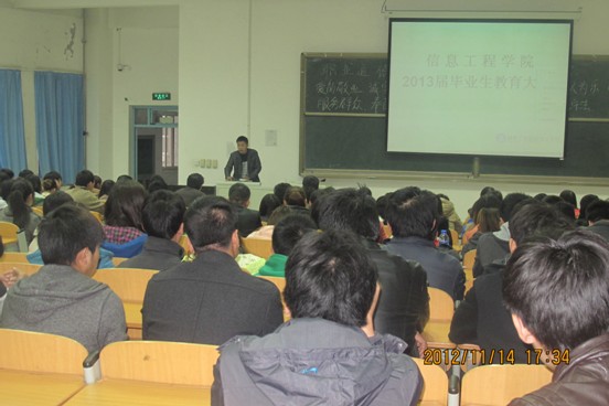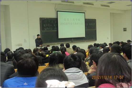 11月14日下午,乐鱼网页版在崇文西楼301教室举行2013届毕业生动员暨教育大会。乐鱼网页版总支书记杜云,副院长夏东盛,学工办主任曹伟及全体辅导员、毕业班班主任、2013届毕业生近290人参加了大会。大会由学工办主任曹伟主持。