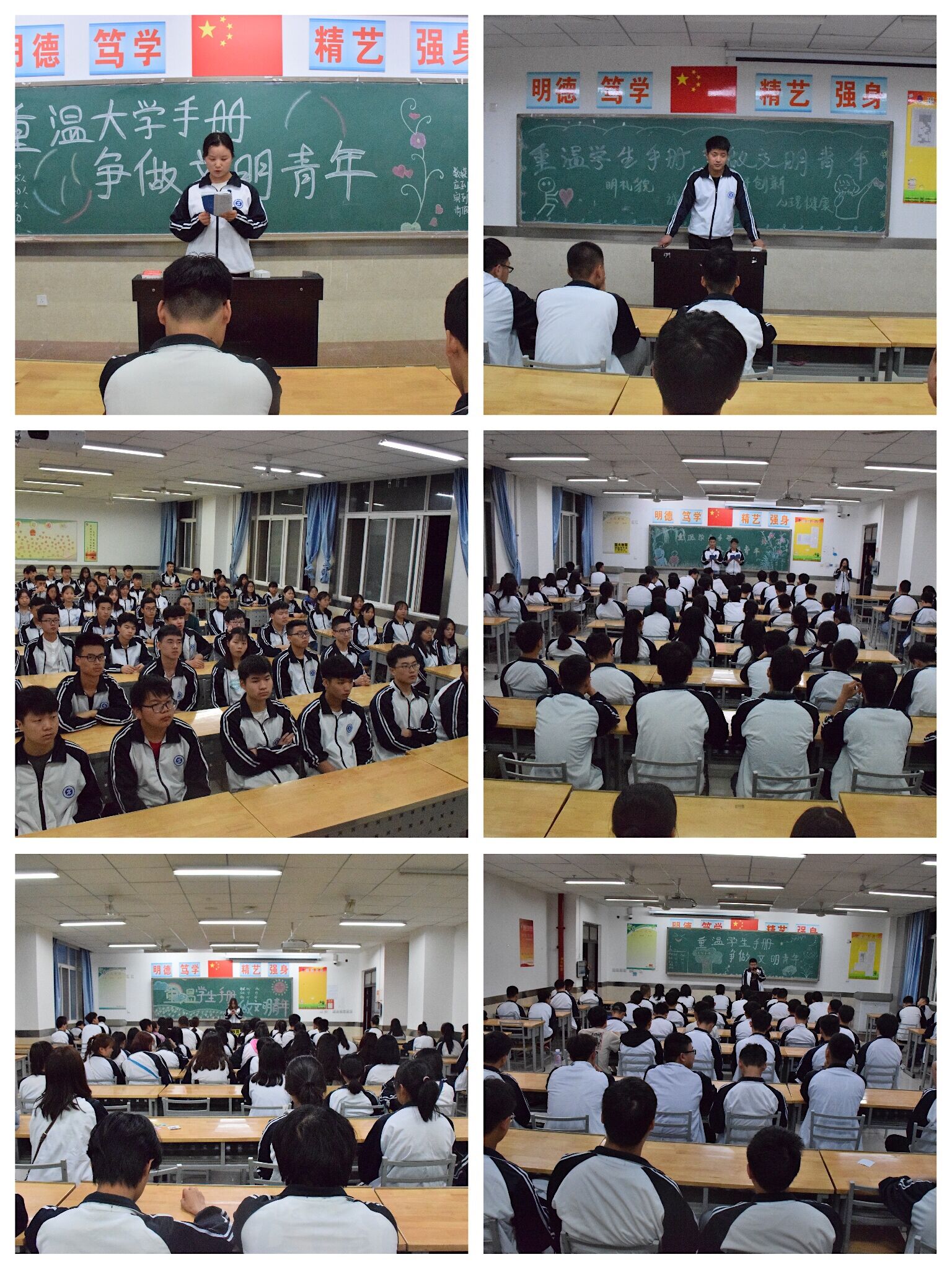 --开展重温学生手册主题班会。5月29日,信息学院组织大一、大二全体学生召开“重温学生手册,争做文明青年”主题班会。通过组织学生重温学生手册条例、讲解校园安全案例等多种形式,提高班级学生遵纪守法意识,规范学生自身行为,提高大学生文明修养和安全防范意识及能力。