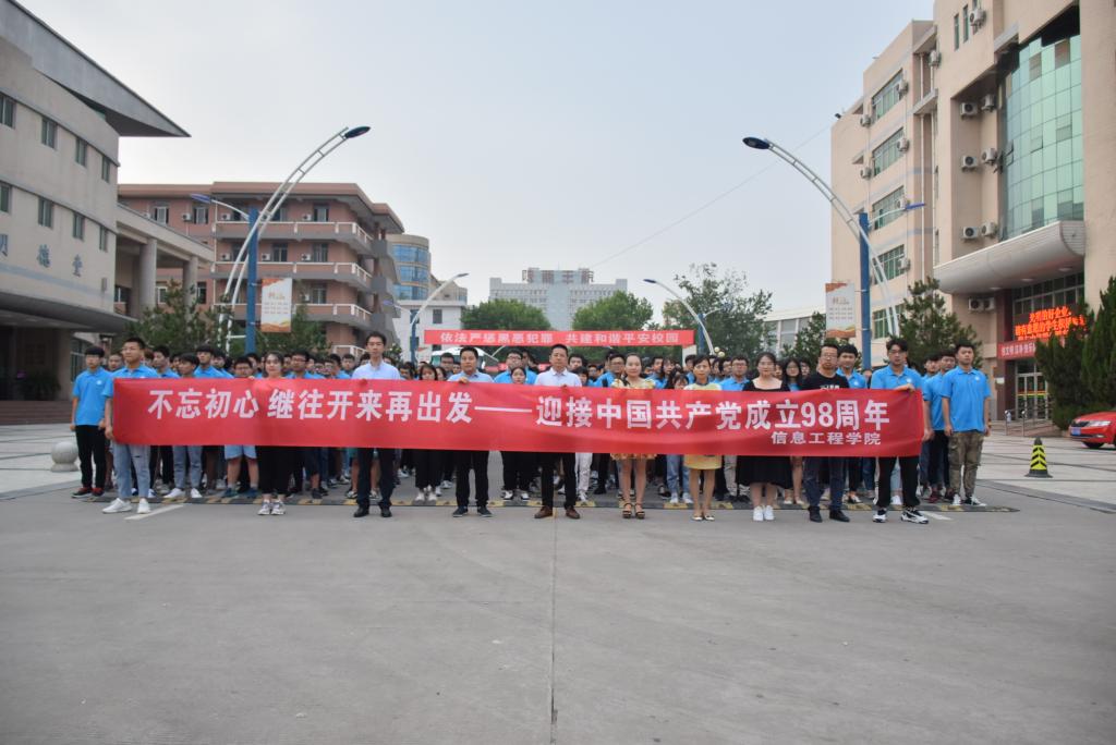 为庆祝建党98周年,进一步激发学生爱校、爱党、爱国的热情,在七一建党节来临之际,6月24日清晨,乐鱼网页版在南门广场开展“国旗下的成长”主题教育活动,本次活动的主题是“不忘初心继往开来再出发——迎接中国共产党成立98周年”。乐鱼网页版党总支书记闫军、学工办全体辅导员、学生预备党员及部分2018级学生共计400余人参加了本次活动。