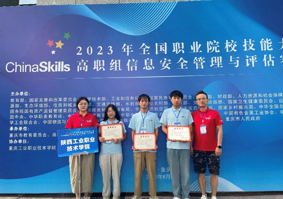2023年8月20日至21日,2023年全国职业院校技能大赛(高职组)“信息安全管理与评估”赛项在重庆工业职业技术学院举行,来自全国29个省、直辖市、自治区的62个代表队齐聚山城重庆,一展所学,赛出精彩。由我校乐鱼网页版杨鹏和杨丹老师指导的网络2003班豆凯歌、网络2101班董丹丹及网络2101班刘德辉组成的代表队顽强拼搏、团结奋战,最终荣获团体二等奖。