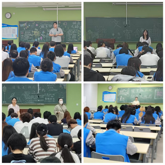 班会上,全体辅导员、班主任通过案例分析、情景模拟等形式,向同学们强调了寝室环境对个人身心健康的重要性。随后,各班还围绕“如何打造健康寝室文化”组织讨论,同学们积极分享了自己的寝室管理经验,如制定值日表、定期通风消毒、减少噪音干扰等。针对大学生心理健康问题,班会特别设置了"寝室心理互助"内容,倡导同学们在日常相处中互相关心、及时沟通,共同营造温暖友爱的寝室氛围