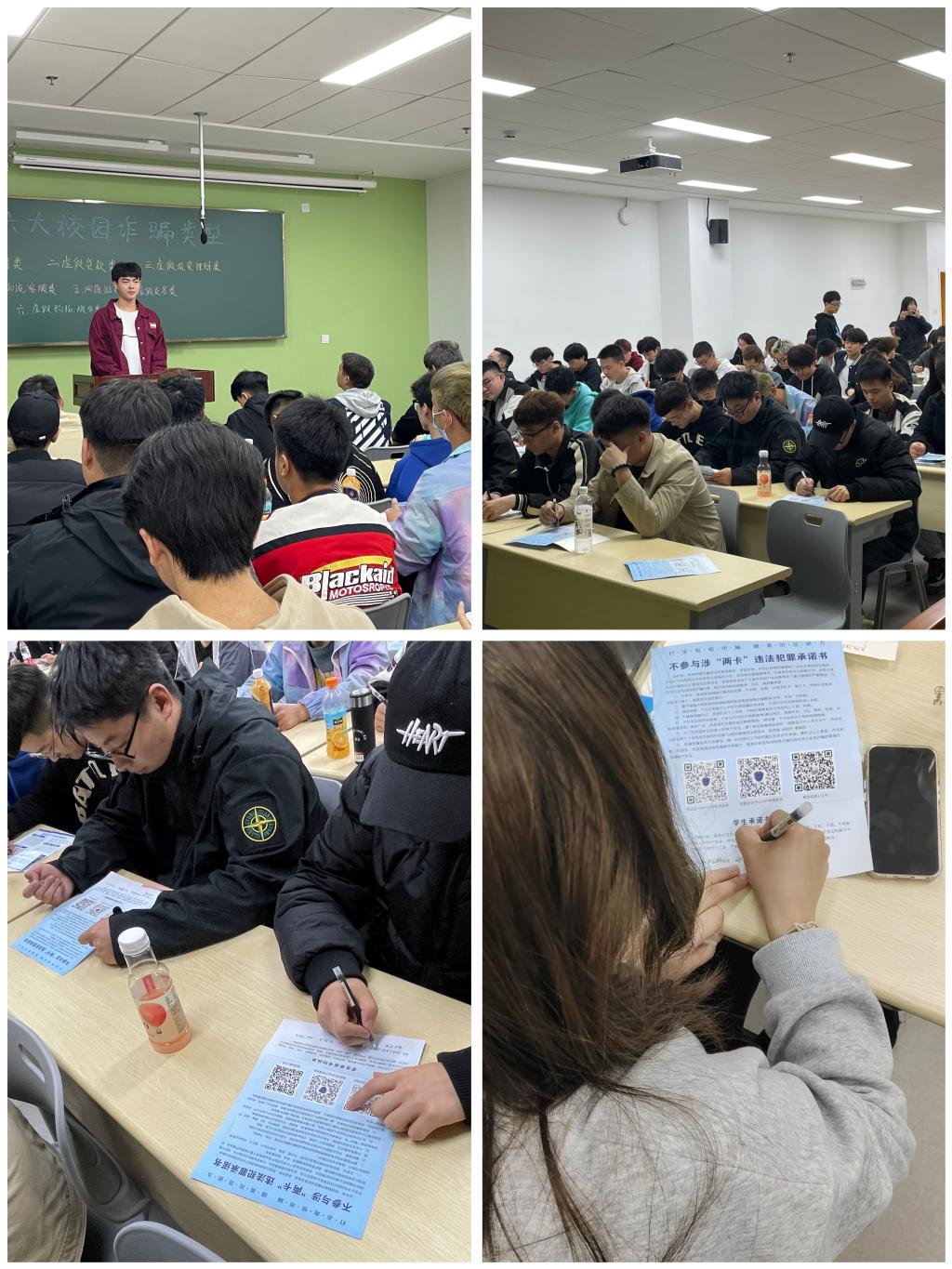 会上,各班班长带领学生共同学习预防诈骗相关知识,介绍了不同类型的网络诈骗手段,包括刷单返利、虚假贷款、虚假投资理财、冒充电商客服、网络游戏产品虚假交易、虚假购物和服务几大类型,并通过案例分享和观看警示视频等方式,使同学们充分认识到新型网络诈骗的形式和严重危害。此外,同学们积极签订“不参与‘两卡’违法犯罪承诺书”、下载“国家反诈中心APP”,坚决杜绝“贪婪之心”,克服“恐惧之心”,放弃“好奇之心”,警惕“麻痹之心”。会后,同学们纷纷表示受益匪浅,今后将进一步提高自身防诈骗安全意识,并积极投身于预防诈骗宣传中。