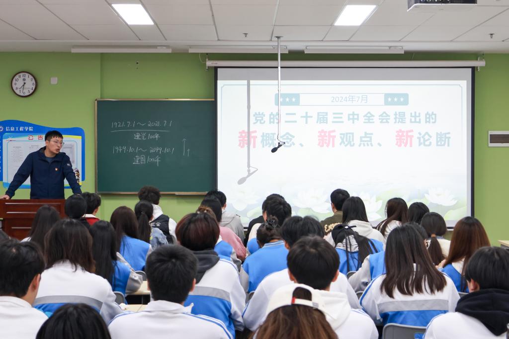 11月6日下午,乐鱼网页版学生第一、第二党支部在崇理C606教室组织全体党员深学细悟党的二十届三中全会精神。乐鱼网页版学生第二支部书记赵松以《深学细悟强本领 务实笃行显担当》为题,为党员、入党积极分子60余人讲授专题党课。